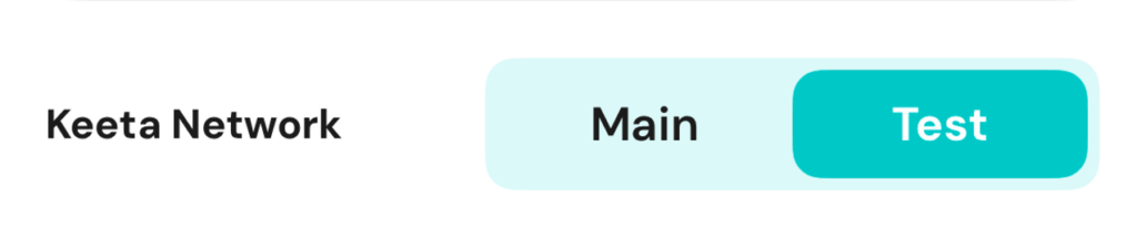 In this view you are able now to switch your wallet between Keeta’s main net and test net.
