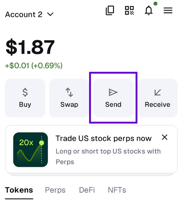Open your base wallet application (in our example MetaMask) and click the Send option.