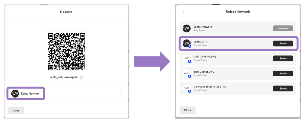 3. In the window that appears, choose “Keeta (KTA) From Base.”